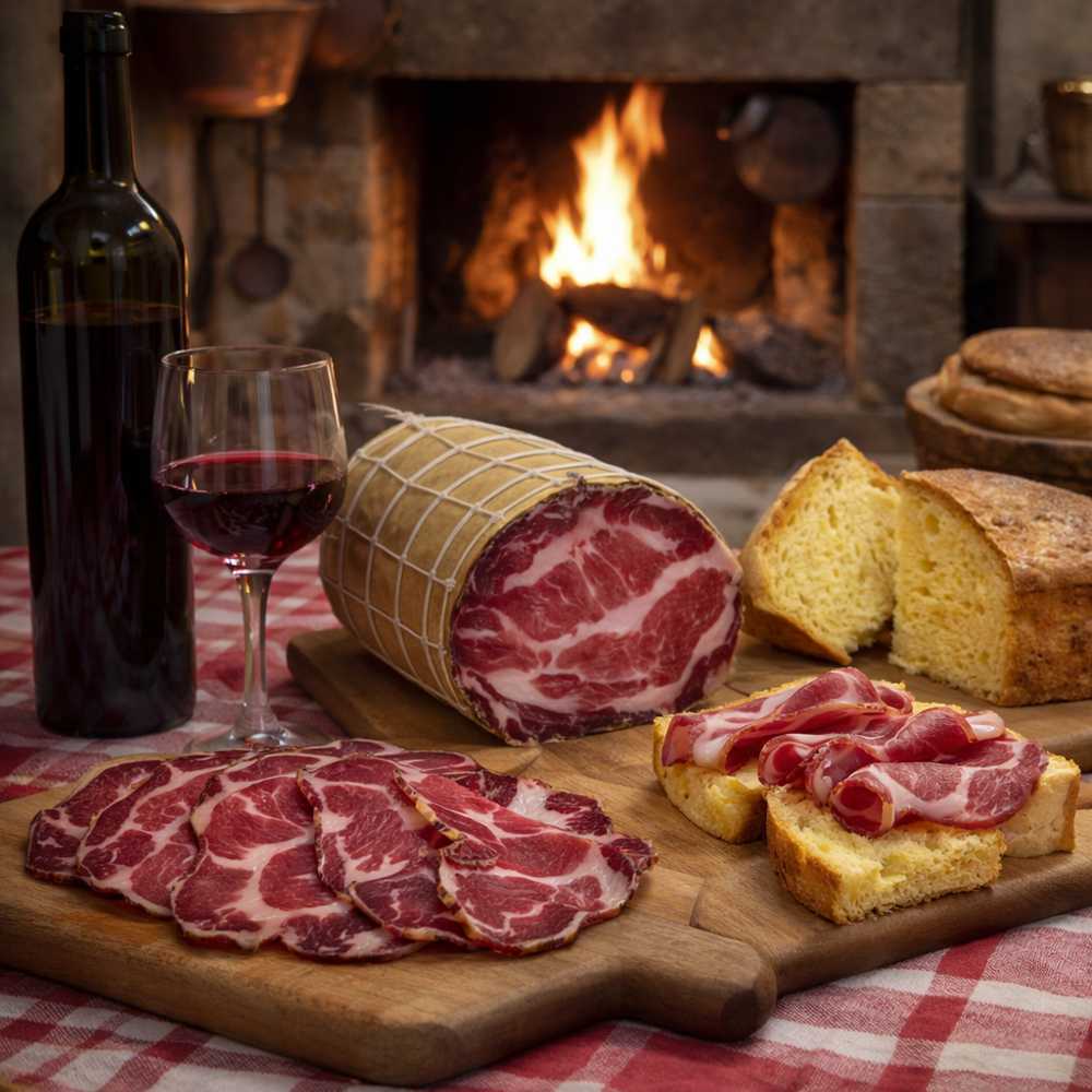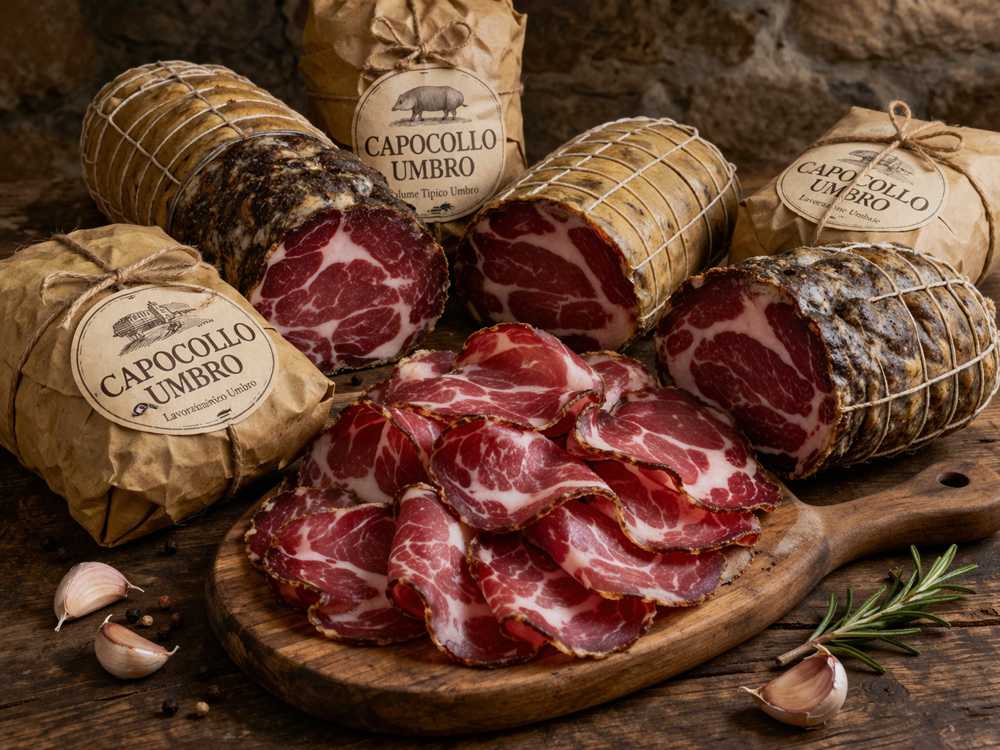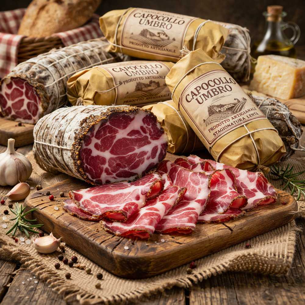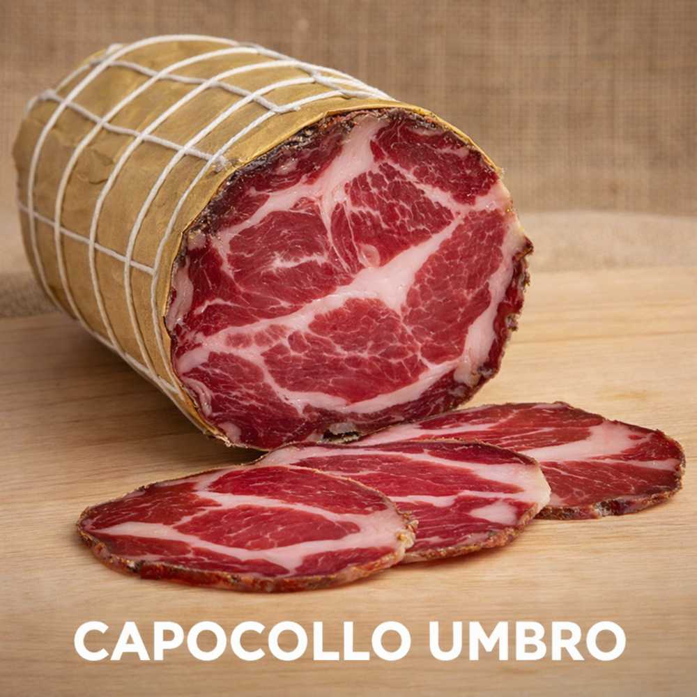 Il capocollo umbro artigianale è uno dei salumi più autentici della tradizione norcina, espressione pura della cultura contadina dell’Umbria. Un prodotto che nasce dal rispetto della materia prima, dalla lavorazione lenta e da una conoscenza tramandata di generazione in generazione.